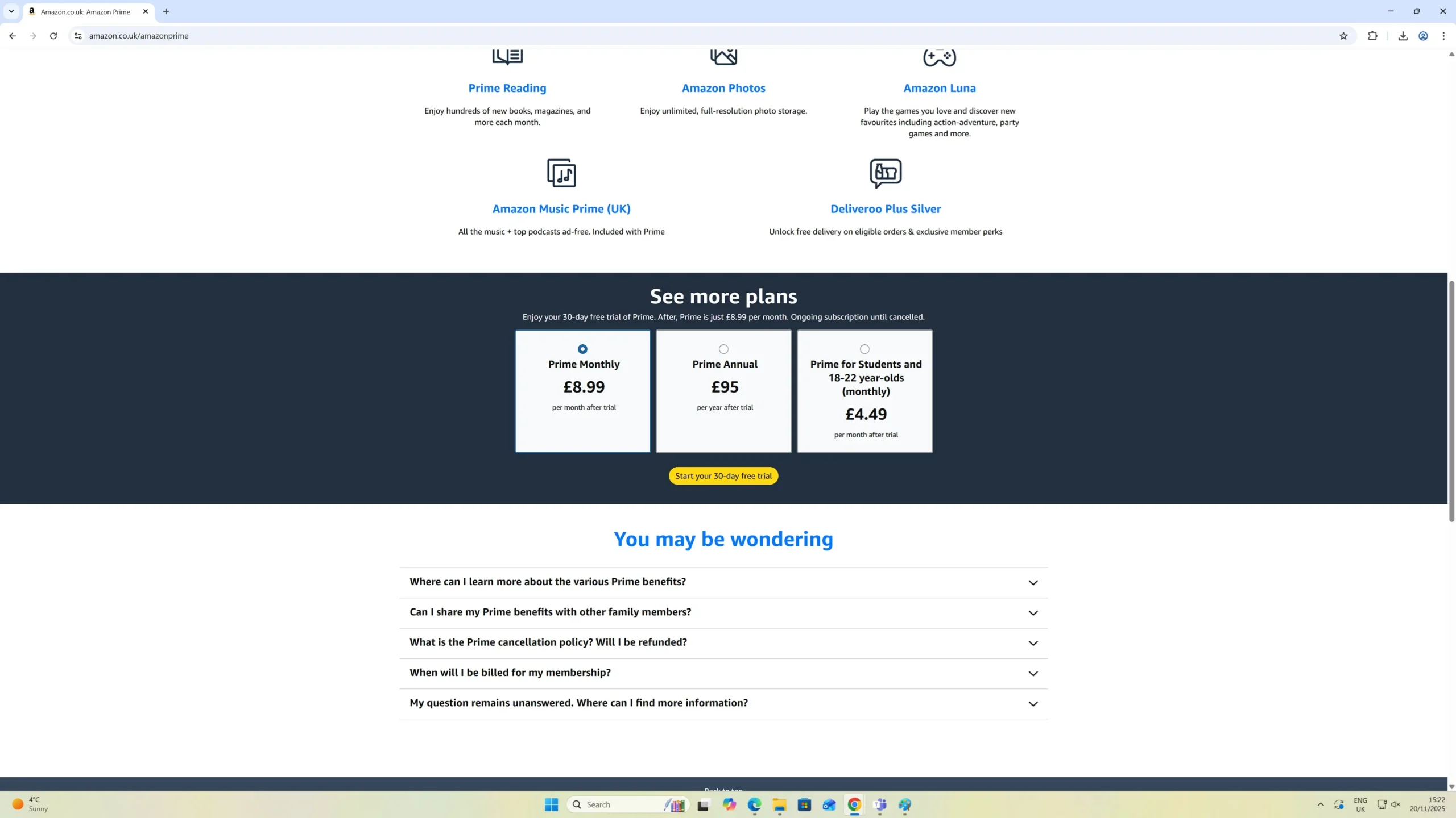 I opened my Amazon account → Manage Prime membership about 2 minutes ago and this is literally what it shows today (20 Nov 2025):